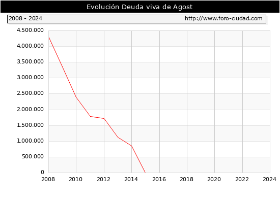 Agost - Deuda viva del Ayuntamiento a 31/12/2024 Agost - Deuda viva del Ayuntamiento a 31/12/2024 Segun el Ministerio de Economia y Hacienda el Ayuntamiento de Agost a 31/12/2024 posee una deuda de 0 € . La deuda viva a 31/12/2023 ascendia a 0 € por lo que en el ultimo año la deuda se mantuvo igual. ![]()
