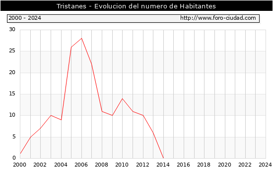 el numero de habitantes en Tristanes era de 0, igual numero de habitantes que el en el año 2023. En el grafico siguiente se puede ver cuantos habitantes tiene Tristanes a lo largo de los años.