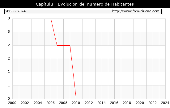 el numero de habitantes en Capítulu era de 0, igual numero de habitantes que el en el año 2023. En el grafico siguiente se puede ver cuantos habitantes tiene Capítulu a lo largo de los años.