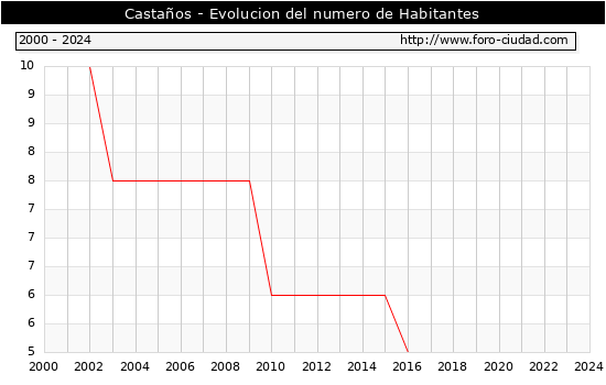 el numero de habitantes en Castaños era de 5, igual numero de habitantes que el en el año 2023. En el grafico siguiente se puede ver cuantos habitantes tiene Castaños a lo largo de los años.