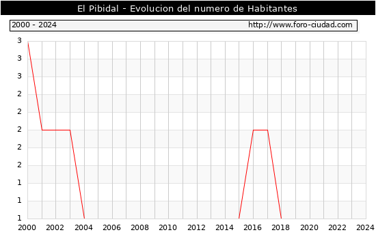 el numero de habitantes en El Pibidal era de 1, igual numero de habitantes que el en el año 2023. En el grafico siguiente se puede ver cuantos habitantes tiene El Pibidal a lo largo de los años.