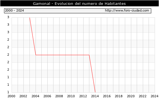 el numero de habitantes en Gamonal era de 1, igual numero de habitantes que el en el año 2023. En el grafico siguiente se puede ver cuantos habitantes tiene Gamonal a lo largo de los años.