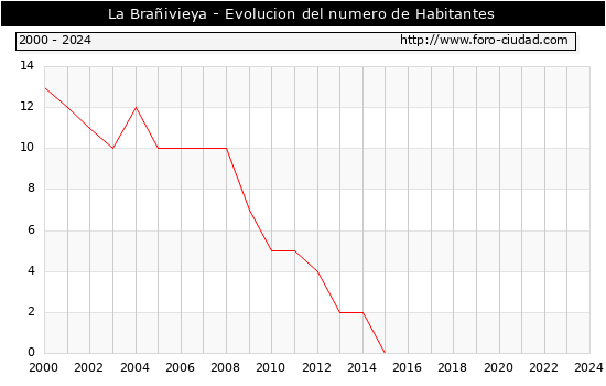 el numero de habitantes en La Brañivieya era de 0, igual numero de habitantes que el en el año 2023. En el grafico siguiente se puede ver cuantos habitantes tiene La Brañivieya a lo largo de los años.