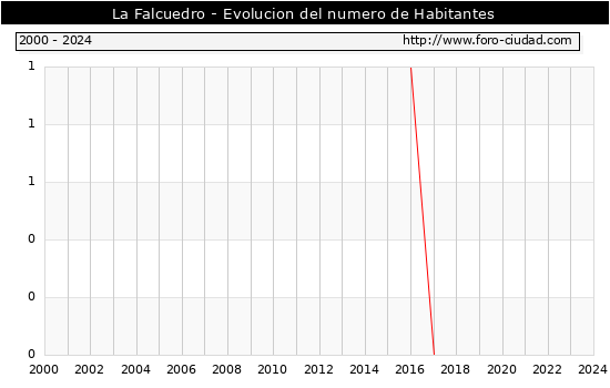 el numero de habitantes en La Falcuedro era de 0, igual numero de habitantes que el en el año 2023. En el grafico siguiente se puede ver cuantos habitantes tiene La Falcuedro a lo largo de los años.
