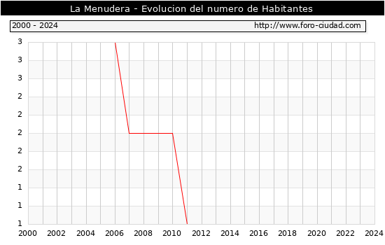 el numero de habitantes en La Menudera era de 1, igual numero de habitantes que el en el año 2023. En el grafico siguiente se puede ver cuantos habitantes tiene La Menudera a lo largo de los años.