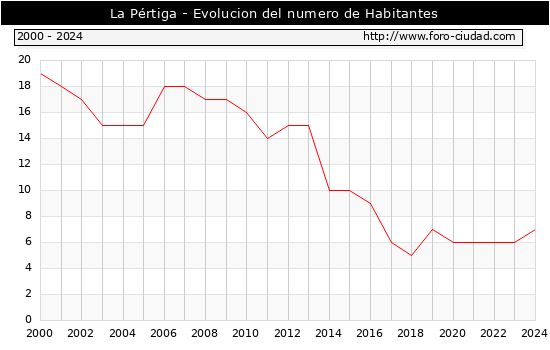 el numero de habitantes en La Pértiga era de 7, 1 habitantes mas que el en el año 2023. En el grafico siguiente se puede ver cuantos habitantes tiene La Pértiga a lo largo de los años.