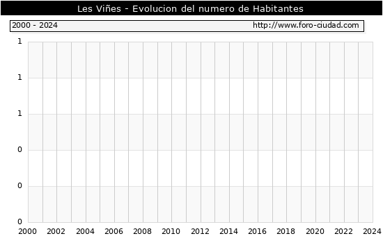 el numero de habitantes en Les Viñes era de 0, igual numero de habitantes que el en el año 2023. En el grafico siguiente se puede ver cuantos habitantes tiene Les Viñes a lo largo de los años.