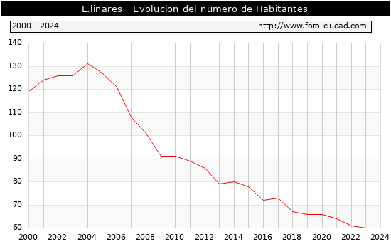 el numero de habitantes en L.linares era de 60, igual numero de habitantes que el en el año 2023. En el grafico siguiente se puede ver cuantos habitantes tiene L.linares a lo largo de los años.
