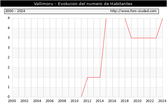el numero de habitantes en Vallimoru era de 4, 1 habitantes mas que el en el año 2023. En el grafico siguiente se puede ver cuantos habitantes tiene Vallimoru a lo largo de los años.