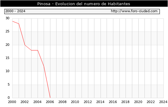 el numero de habitantes en Pinosa era de 0, igual numero de habitantes que el en el año 2023. En el grafico siguiente se puede ver cuantos habitantes tiene Pinosa a lo largo de los años.
