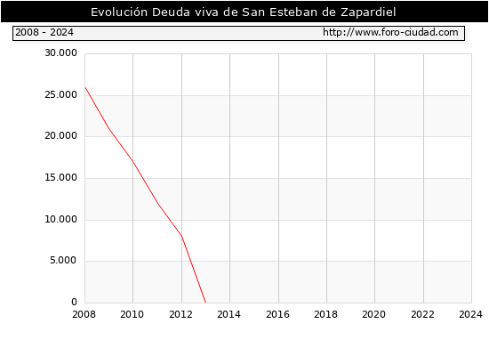San Esteban de Zapardiel - Deuda viva del Ayuntamiento a 31/12/2024 San Esteban de Zapardiel - Deuda viva del Ayuntamiento a 31/12/2024 Segun el Ministerio de Economia y Hacienda el Ayuntamiento de San Esteban de Zapardiel a 31/12/2024 posee una deuda de 0 € . La deuda viva a 31/12/2023 ascendia a 0 € por lo que en el ultimo año la deuda se mantuvo igual. ![]()