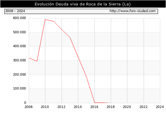 La Roca de la Sierra - Deuda viva del Ayuntamiento a 31/12/2024 La Roca de la Sierra - Deuda viva del Ayuntamiento a 31/12/2024 Segun el Ministerio de Economia y Hacienda el Ayuntamiento de La Roca de la Sierra a 31/12/2024 posee una deuda de 0 € . La deuda viva a 31/12/2023 ascendia a 0 € por lo que en el ultimo año la deuda se mantuvo igual. ![]()