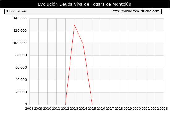 Fogars de Montclús - Deuda viva del Ayuntamiento a 31/12/2024 Fogars de Montclús - Deuda viva del Ayuntamiento a 31/12/2024 Segun el Ministerio de Economia y Hacienda el Ayuntamiento de Fogars de Montclús a 31/12/2024 posee una deuda de 0 € . La deuda viva a 31/12/2023 ascendia a 0 € por lo que en el ultimo año la deuda se mantuvo igual. ![]()