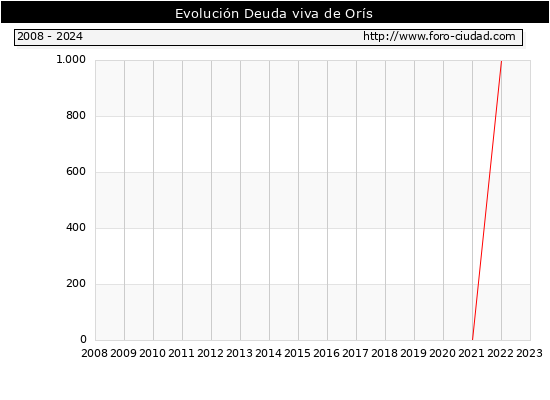 Orís - Deuda viva del Ayuntamiento a 31/12/2024 Orís - Deuda viva del Ayuntamiento a 31/12/2024 Segun el Ministerio de Economia y Hacienda el Ayuntamiento de Orís a 31/12/2024 posee una deuda de 0 € . La deuda viva a 31/12/2023 ascendia a 1.000 € por lo que en el ultimo año la deuda se redujo en -1.000 €. ![]()
