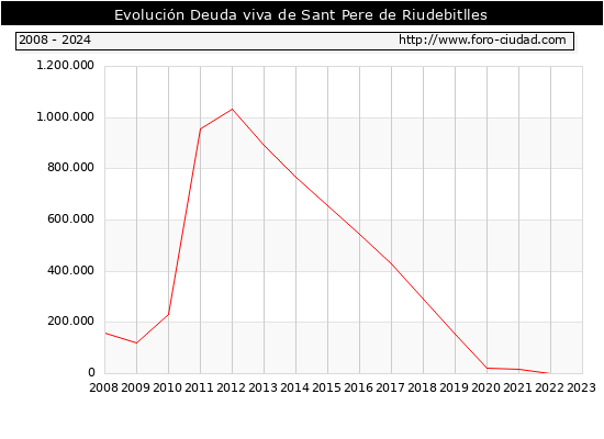 Sant Pere de Riudebitlles - Deuda viva del Ayuntamiento a 31/12/2024 Sant Pere de Riudebitlles - Deuda viva del Ayuntamiento a 31/12/2024 Segun el Ministerio de Economia y Hacienda el Ayuntamiento de Sant Pere de Riudebitlles a 31/12/2024 posee una deuda de 0 € . La deuda viva a 31/12/2023 ascendia a 0 € por lo que en el ultimo año la deuda se mantuvo igual. ![]()