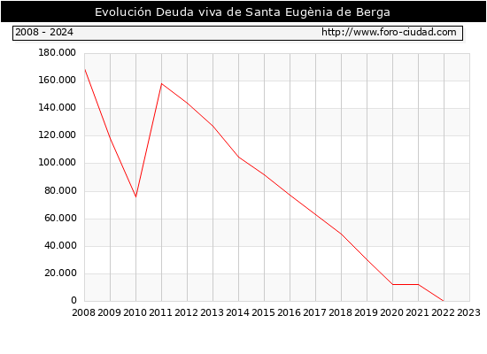 Santa Eugènia de Berga - Deuda viva del Ayuntamiento a 31/12/2024 Santa Eugènia de Berga - Deuda viva del Ayuntamiento a 31/12/2024 Segun el Ministerio de Economia y Hacienda el Ayuntamiento de Santa Eugènia de Berga a 31/12/2024 posee una deuda de 0 € . La deuda viva a 31/12/2023 ascendia a 0 € por lo que en el ultimo año la deuda se mantuvo igual. ![]()