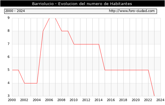 el numero de habitantes en Barriolucio era de 3, igual numero de habitantes que el en el año 2023. En el grafico siguiente se puede ver cuantos habitantes tiene Barriolucio a lo largo de los años.