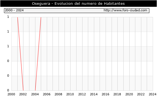el numero de habitantes en Oseguera era de 1, igual numero de habitantes que el en el año 2023. En el grafico siguiente se puede ver cuantos habitantes tiene Oseguera a lo largo de los años.