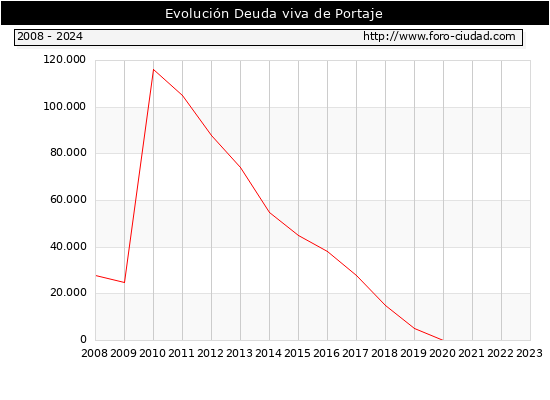 Portaje - Deuda viva del Ayuntamiento a 31/12/2024 Portaje - Deuda viva del Ayuntamiento a 31/12/2024 Segun el Ministerio de Economia y Hacienda el Ayuntamiento de Portaje a 31/12/2024 posee una deuda de 0 € . La deuda viva a 31/12/2023 ascendia a 0 € por lo que en el ultimo año la deuda se mantuvo igual. ![]()