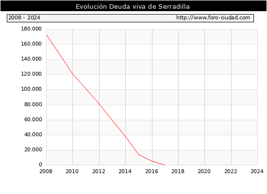 Serradilla - Deuda viva del Ayuntamiento a 31/12/2024 Serradilla - Deuda viva del Ayuntamiento a 31/12/2024 Segun el Ministerio de Economia y Hacienda el Ayuntamiento de Serradilla a 31/12/2024 posee una deuda de 0 € . La deuda viva a 31/12/2023 ascendia a 0 € por lo que en el ultimo año la deuda se mantuvo igual. ![]()