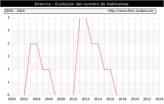 el numero de habitantes en Enterría era de 0, igual numero de habitantes que el en el año 2023. En el grafico siguiente se puede ver cuantos habitantes tiene Enterría a lo largo de los años.