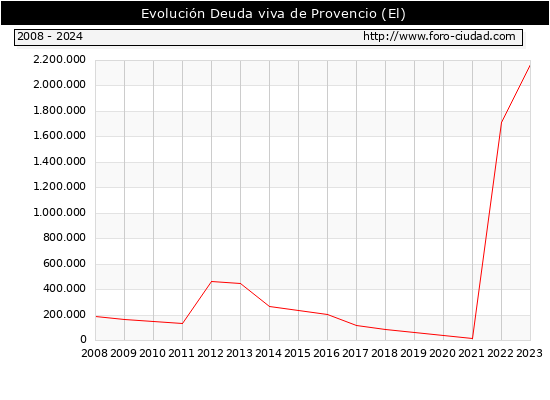 El Provencio - Deuda viva del Ayuntamiento a 31/12/2024 El Provencio - Deuda viva del Ayuntamiento a 31/12/2024 Segun el Ministerio de Economia y Hacienda el Ayuntamiento de El Provencio a 31/12/2024 posee una deuda de 1.658.000 € . La deuda viva a 31/12/2023 ascendia a 2.169.000 € por lo que en el ultimo año la deuda se redujo en -511.000 €. ![]()