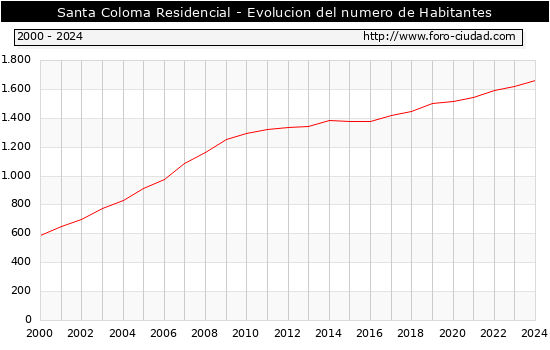 el numero de habitantes en Santa Coloma Residencial era de 1.664, 47 habitantes mas que el en el año 2023. En el grafico siguiente se puede ver cuantos habitantes tiene Santa Coloma Residencial a lo largo de los años.