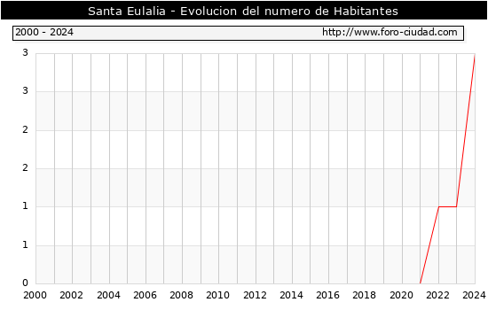 el numero de habitantes en Santa Eulalia era de 3, 2 habitantes mas que el en el año 2023. En el grafico siguiente se puede ver cuantos habitantes tiene Santa Eulalia a lo largo de los años.