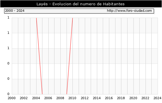 el numero de habitantes en Layés era de 1, igual numero de habitantes que el en el ańo 2023. En el grafico siguiente se puede ver cuantos habitantes tiene Layés a lo largo de los ańos.