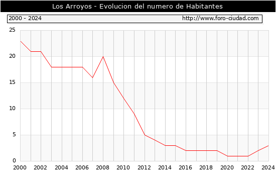 el numero de habitantes en Los Arroyos era de 3, 1 habitantes mas que el en el año 2023. En el grafico siguiente se puede ver cuantos habitantes tiene Los Arroyos a lo largo de los años.