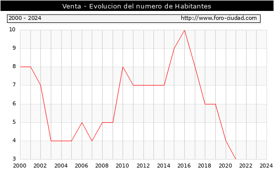el numero de habitantes en Venta era de 3, igual numero de habitantes que el en el año 2023. En el grafico siguiente se puede ver cuantos habitantes tiene Venta a lo largo de los años.