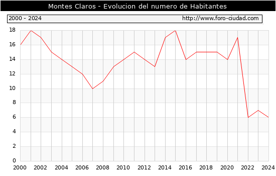 el numero de habitantes en Montes Claros era de 6, 1 habitantes menos que el en el año 2023. En el grafico siguiente se puede ver cuantos habitantes tiene Montes Claros a lo largo de los años.