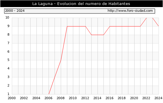 el numero de habitantes en La Laguna era de 9, 1 habitantes menos que el en el año 2023. En el grafico siguiente se puede ver cuantos habitantes tiene La Laguna a lo largo de los años.