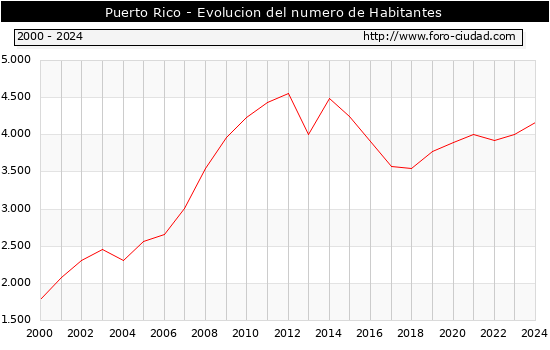 el numero de habitantes en Puerto Rico era de 4.169, 161 habitantes mas que el en el año 2023. En el grafico siguiente se puede ver cuantos habitantes tiene Puerto Rico a lo largo de los años.