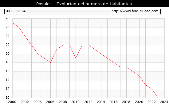 el numero de habitantes en Rosales era de 10, igual numero de habitantes que el en el año 2023. En el grafico siguiente se puede ver cuantos habitantes tiene Rosales a lo largo de los años.