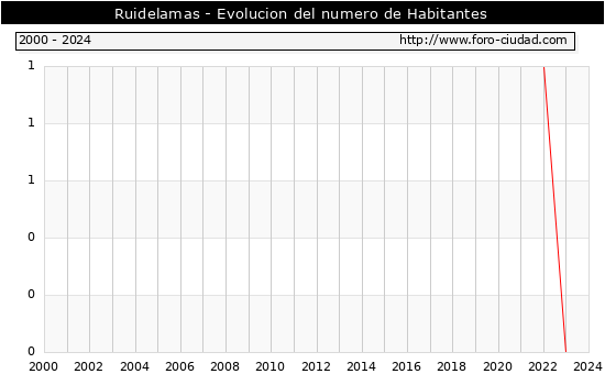 el numero de habitantes en Ruidelamas era de 0, igual numero de habitantes que el en el año 2023. En el grafico siguiente se puede ver cuantos habitantes tiene Ruidelamas a lo largo de los años.