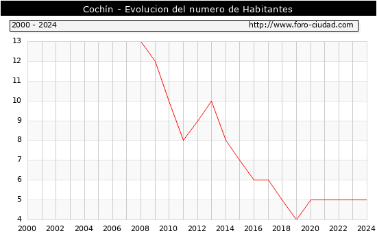 el numero de habitantes en Cochín era de 5, igual numero de habitantes que el en el año 2023. En el grafico siguiente se puede ver cuantos habitantes tiene Cochín a lo largo de los años.