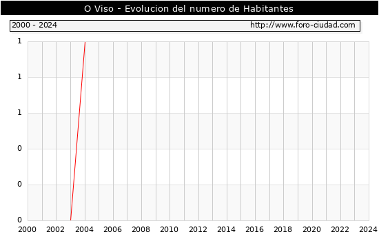 el numero de habitantes en O Viso era de 1, igual numero de habitantes que el en el año 2023. En el grafico siguiente se puede ver cuantos habitantes tiene O Viso a lo largo de los años.