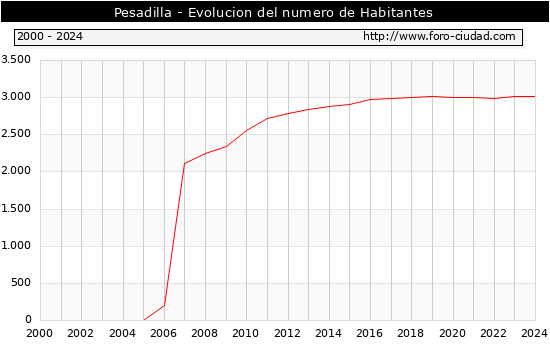 el numero de habitantes en Pesadilla era de 3.012, 8 habitantes menos que el en el año 2023. En el grafico siguiente se puede ver cuantos habitantes tiene Pesadilla a lo largo de los años.