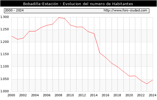el numero de habitantes en Bobadilla-Estación era de 1.047, 16 habitantes mas que el en el año 2023. En el grafico siguiente se puede ver cuantos habitantes tiene Bobadilla-Estación a lo largo de los años.
