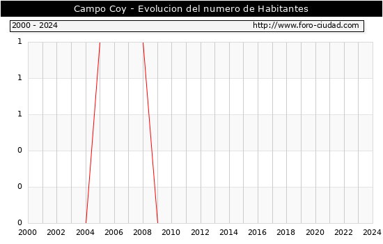 el numero de habitantes en Campo Coy era de 0, igual numero de habitantes que el en el año 2023. En el grafico siguiente se puede ver cuantos habitantes tiene Campo Coy a lo largo de los años.