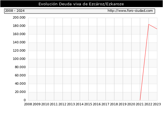 Ezcároz/Ezkaroze - Deuda viva del Ayuntamiento a 31/12/2024 Ezcároz/Ezkaroze - Deuda viva del Ayuntamiento a 31/12/2024 Segun el Ministerio de Economia y Hacienda el Ayuntamiento de Ezcároz/Ezkaroze a 31/12/2024 posee una deuda de 163.000 € . La deuda viva a 31/12/2023 ascendia a 173.000 € por lo que en el ultimo año la deuda se redujo en -10.000 €. ![]()