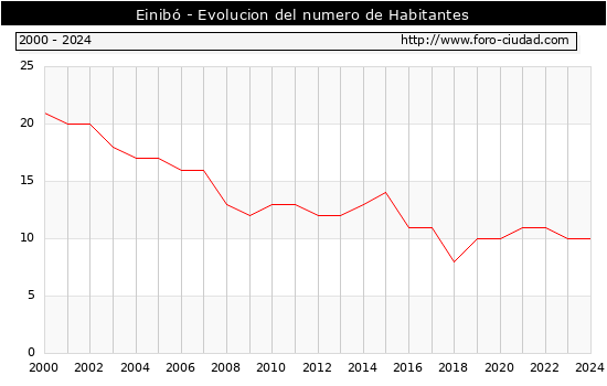 el numero de habitantes en Einibó era de 10, igual numero de habitantes que el en el año 2023. En el grafico siguiente se puede ver cuantos habitantes tiene Einibó a lo largo de los años.