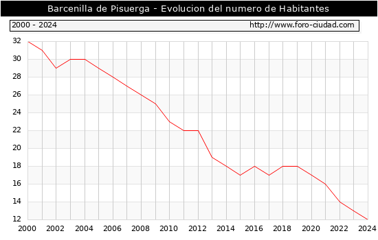el numero de habitantes en Barcenilla de Pisuerga era de 12, 1 habitantes menos que el en el año 2023. En el grafico siguiente se puede ver cuantos habitantes tiene Barcenilla de Pisuerga a lo largo de los años.