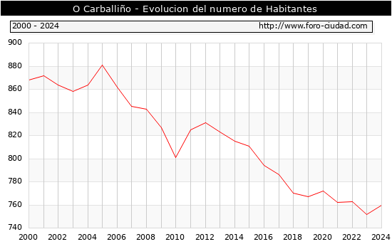 el numero de habitantes en O Carballiño era de 760, 8 habitantes mas que el en el año 2023. En el grafico siguiente se puede ver cuantos habitantes tiene O Carballiño a lo largo de los años.