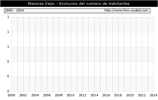 el numero de habitantes en Mazores Viejo era de 0, igual numero de habitantes que el en el año 2023. En el grafico siguiente se puede ver cuantos habitantes tiene Mazores Viejo a lo largo de los años.