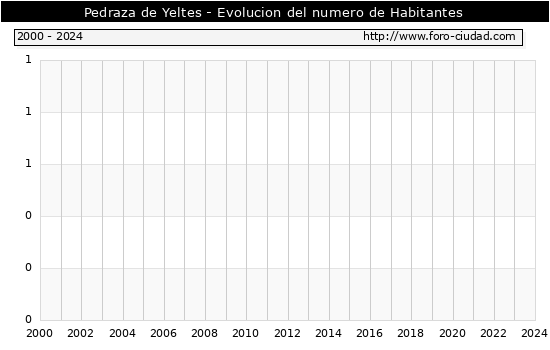 el numero de habitantes en Pedraza de Yeltes era de 0, igual numero de habitantes que el en el año 2023. En el grafico siguiente se puede ver cuantos habitantes tiene Pedraza de Yeltes a lo largo de los años.