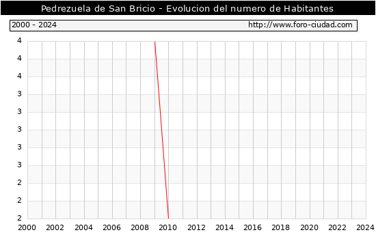 el numero de habitantes en Pedrezuela de San Bricio era de 2, igual numero de habitantes que el en el año 2023. En el grafico siguiente se puede ver cuantos habitantes tiene Pedrezuela de San Bricio a lo largo de los años.