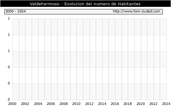 Segun los datos publicados por el INE a 1 de Enero de 2024 el numero de habitantes en Valdehermoso era de 0, igual numero de habitantes que el en el año 2023. En el grafico siguiente se puede ver cuantos habitantes tiene Valdehermoso a lo largo de los años.