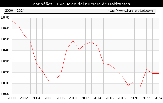 el numero de habitantes en Maribáñez era de 1.019, igual numero de habitantes que el en el año 2023. En el grafico siguiente se puede ver cuantos habitantes tiene Maribáñez a lo largo de los años.